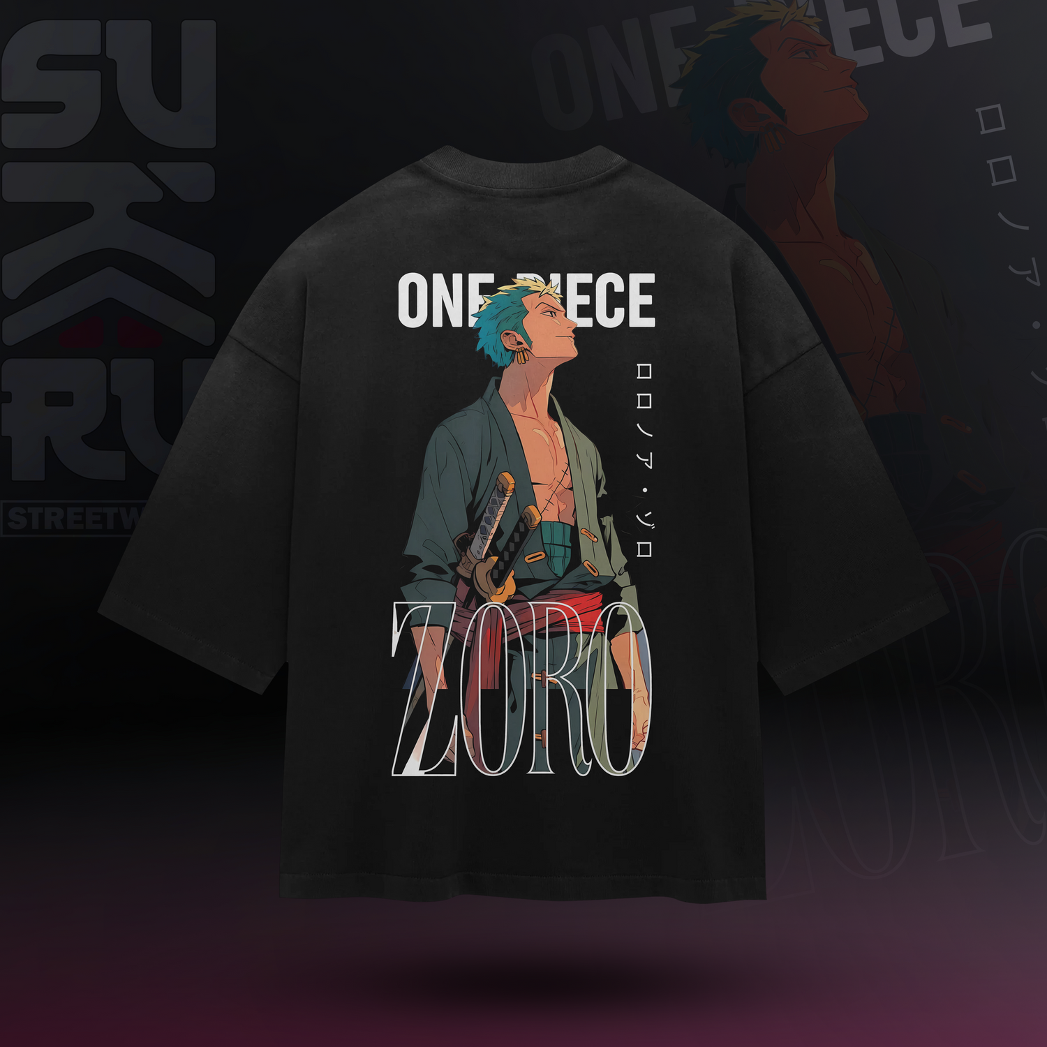 Zoro T-Shirt - One Piece - Oversized Drop Shoulder Baggy Fit - Design 001