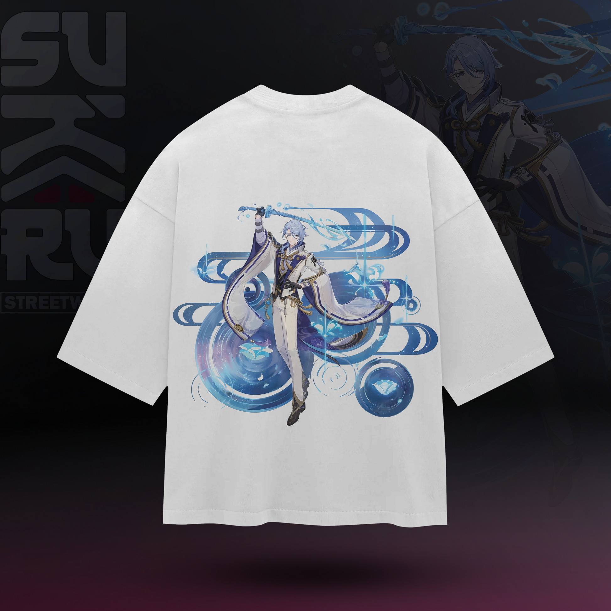 with this Ayato-inspired tee from Genshin Impact. Featuring refined artwork that reflects his calm demeanor and Hydro mastery, this shirt is built in Sukaaru’s baggy, drop shoulder fit for everyday comfort with a touch of nobility. Subtle, stylish, and sharp — just like the head of the Kamisato clan.
