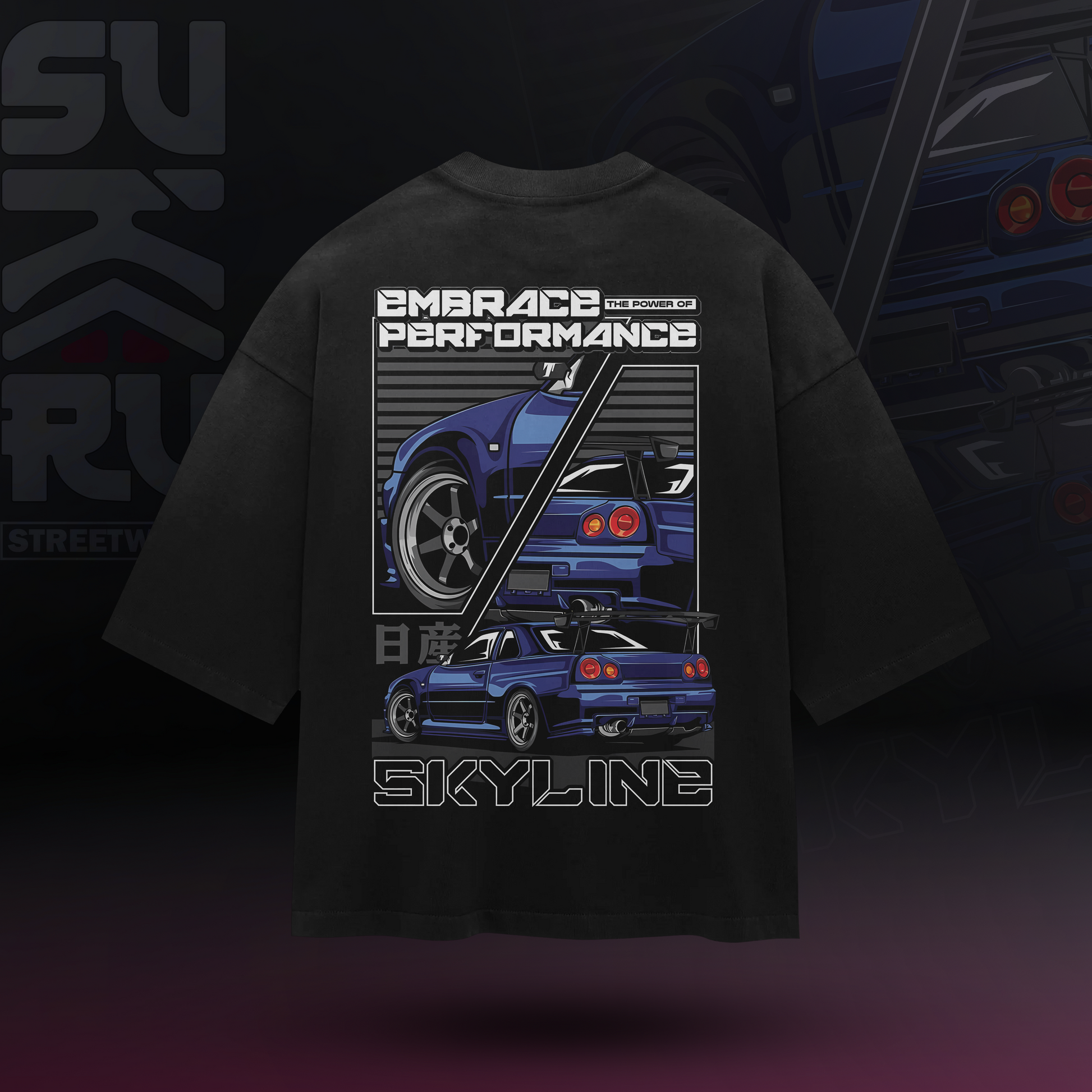 GTR Skyline T-Shirt - Cars Culture - Oversized Drop Shoulder Baggy Fit - Design 001