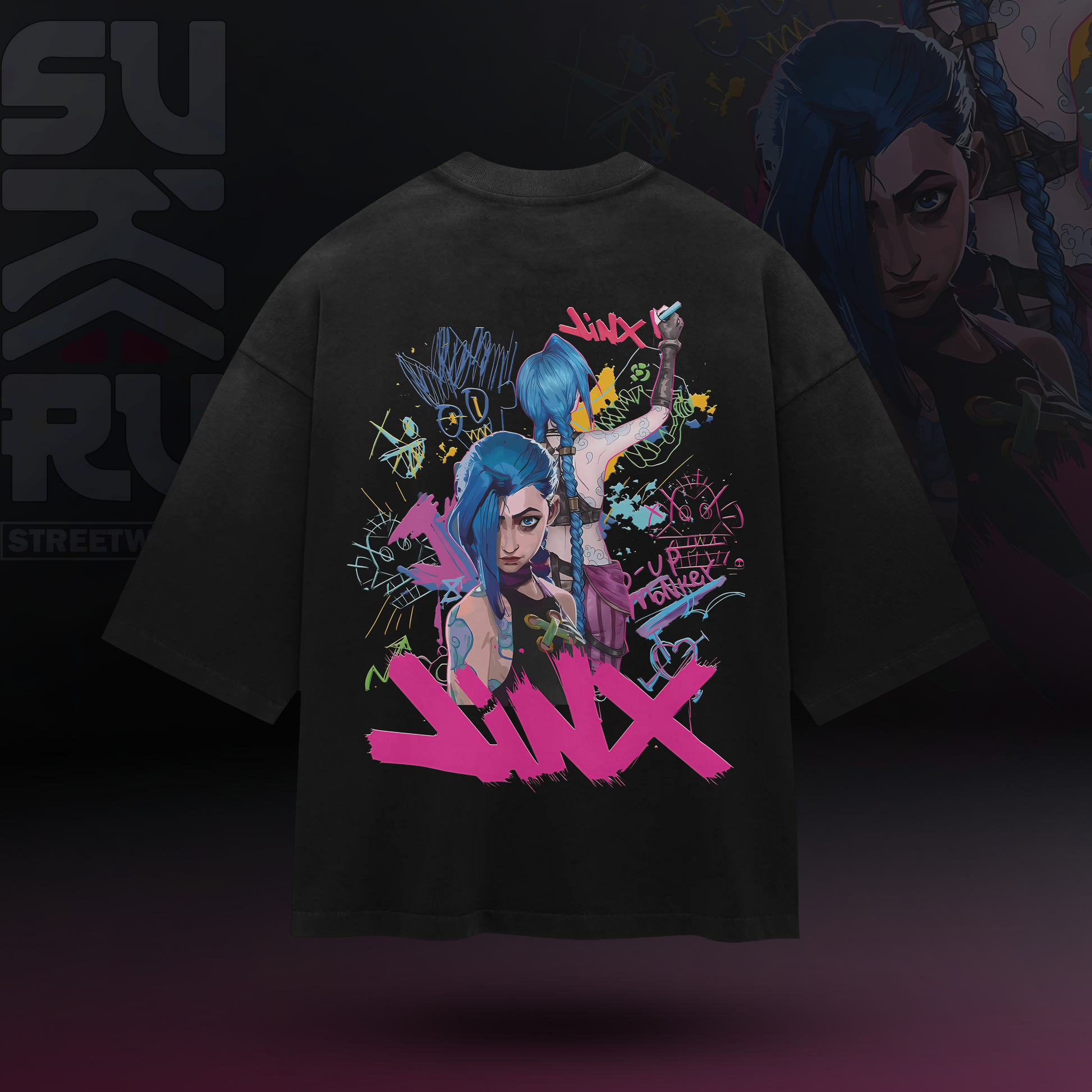 Jinx T-Shirt – Arcane – Oversized Drop Shoulder Baggy Fit – Design 002