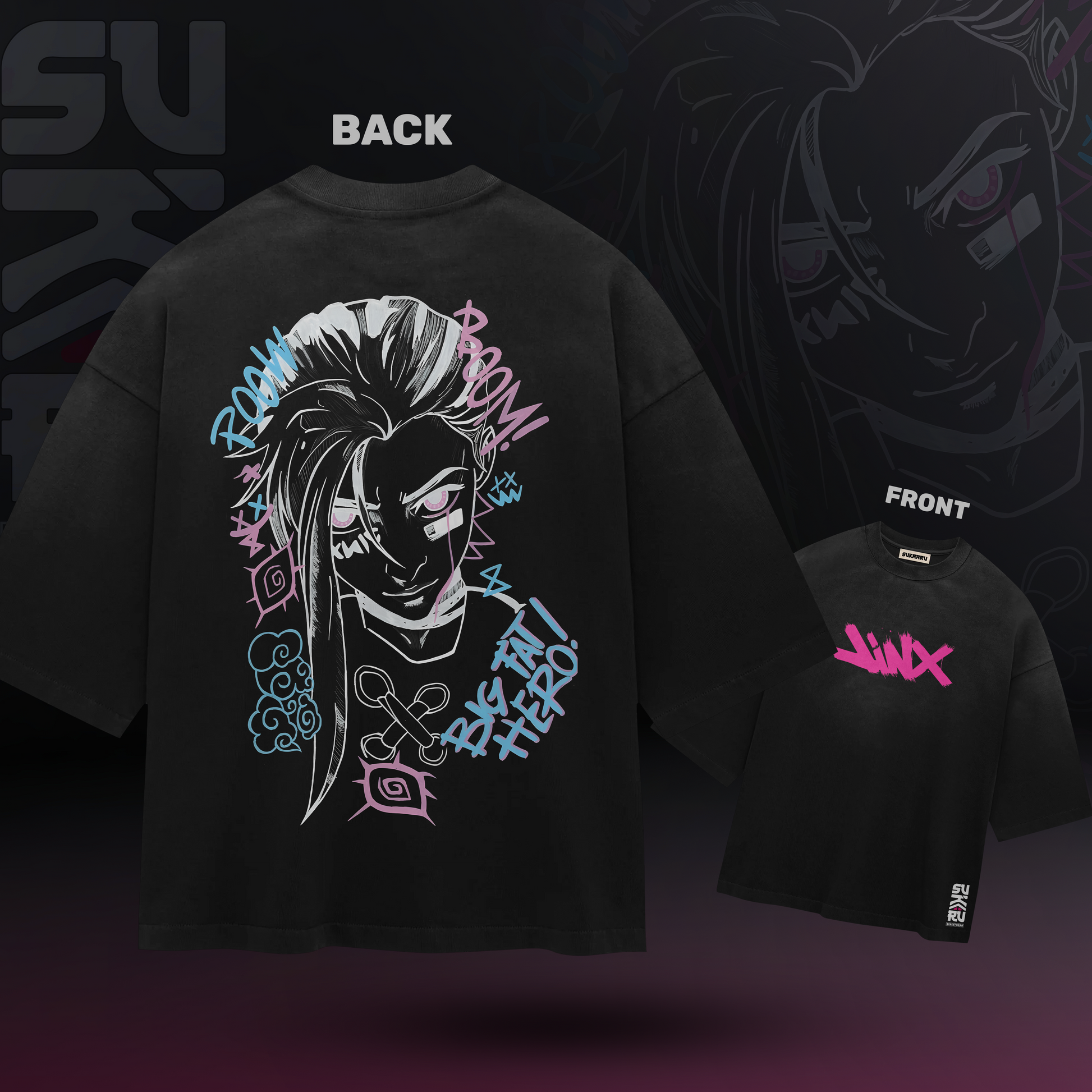 Jinx T-Shirt – Arcane – Oversized Drop Shoulder Baggy Fit – Design 003