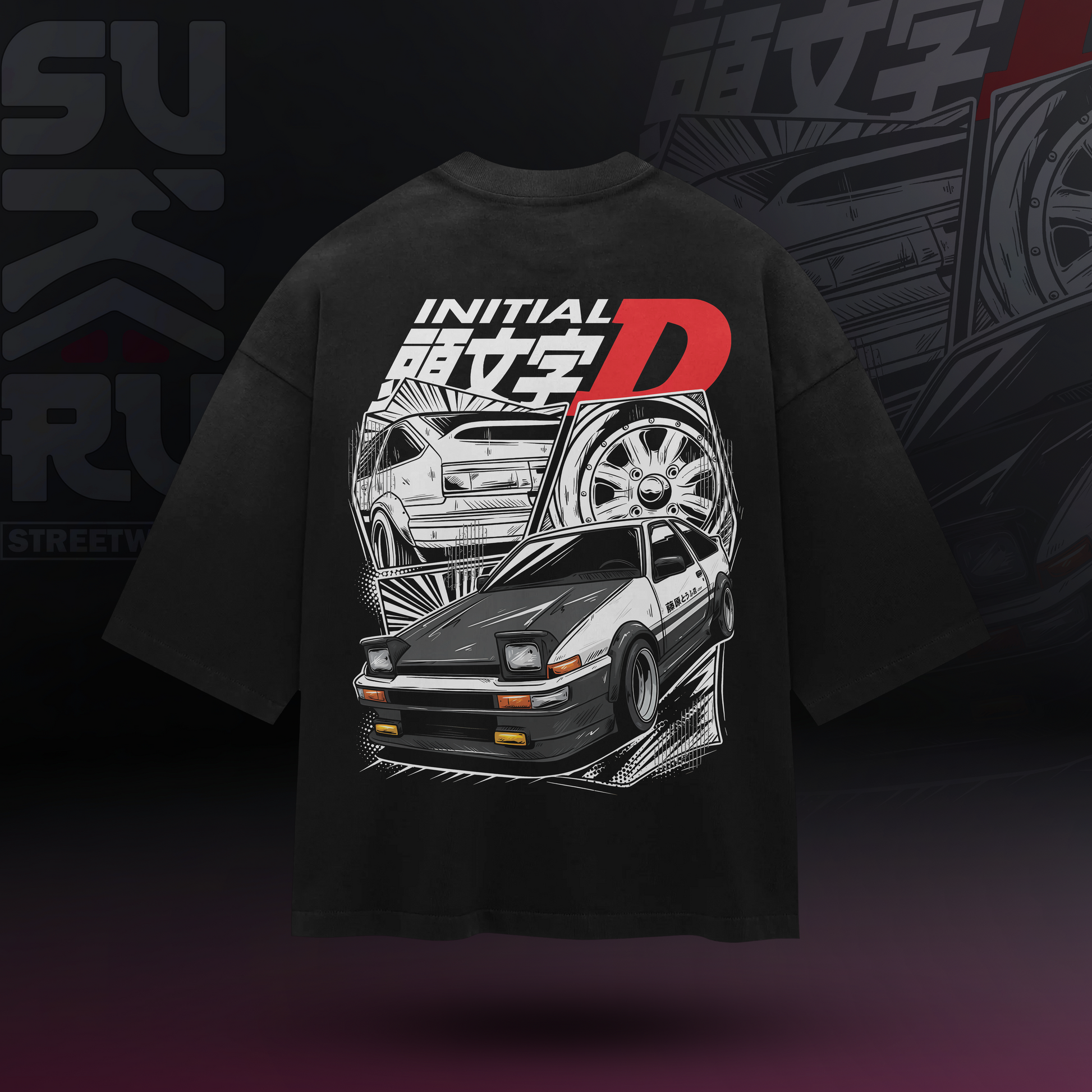 Initial D T-Shirt - Cars Culture - Oversized Drop Shoulder Baggy Fit - Design 001