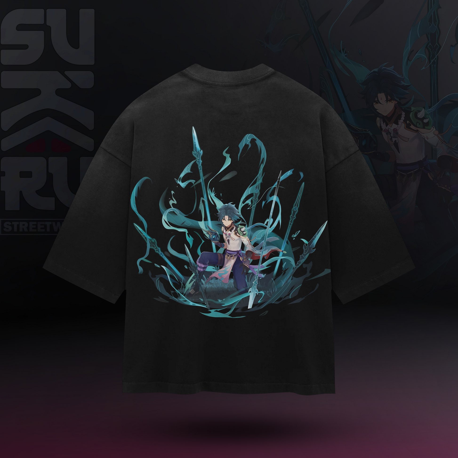 with this Xiao-inspired tee from Genshin Impact. Designed in Sukaaru’s signature baggy drop shoulder fit, this shirt captures Xiao’s stoic presence and Anemo elegance. With bold, fade-resistant artwork and premium comfort, it’s perfect for fans who carry strength in silence.